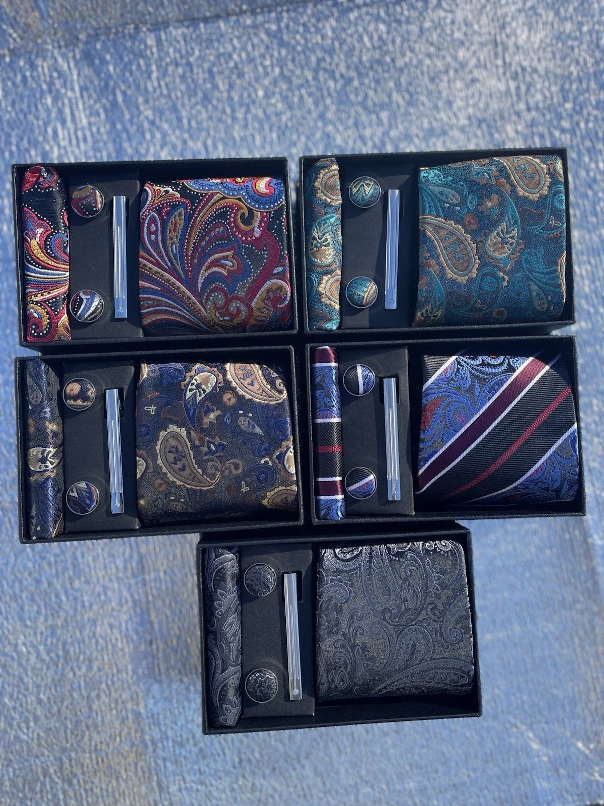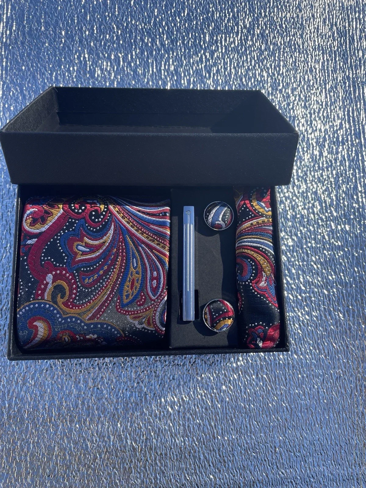 Stunning tie sets with excellent craftman ship. I am very happy with this purchase. I recommend 100% you will not be disappointed. The seller has great communication and replied to all my questions. My items were shipped out to me promptly, receiving them 5 days before estimated delivery. 100% excellent service. Thank you