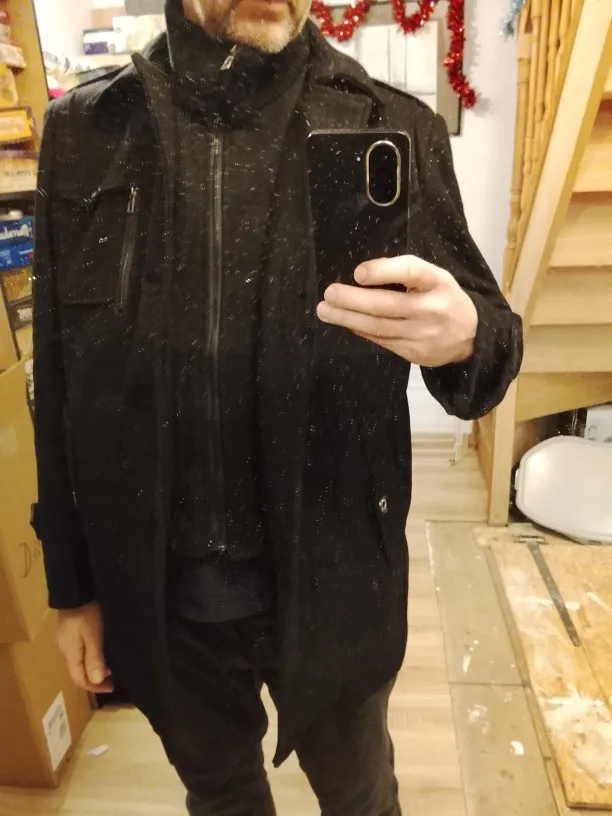 Style and design at its peak: a rich warm color looks very elegant. Especially like the successful combination with an inner knit insert that adds warmth and makes the coat very versatile for different weather conditions. The material looks high-quality, and the fit is perfect. Modern and practical model. Definitely recommend!