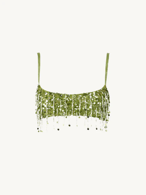 Color: tassel sequins sling-green top, tassel sequins skirt-green skirt, tassel sequins sling-yellow top, tassel sequins skirt-yellow skirt, tassel sequins sling-pink top, tassel sequins skirt-pink overskirt